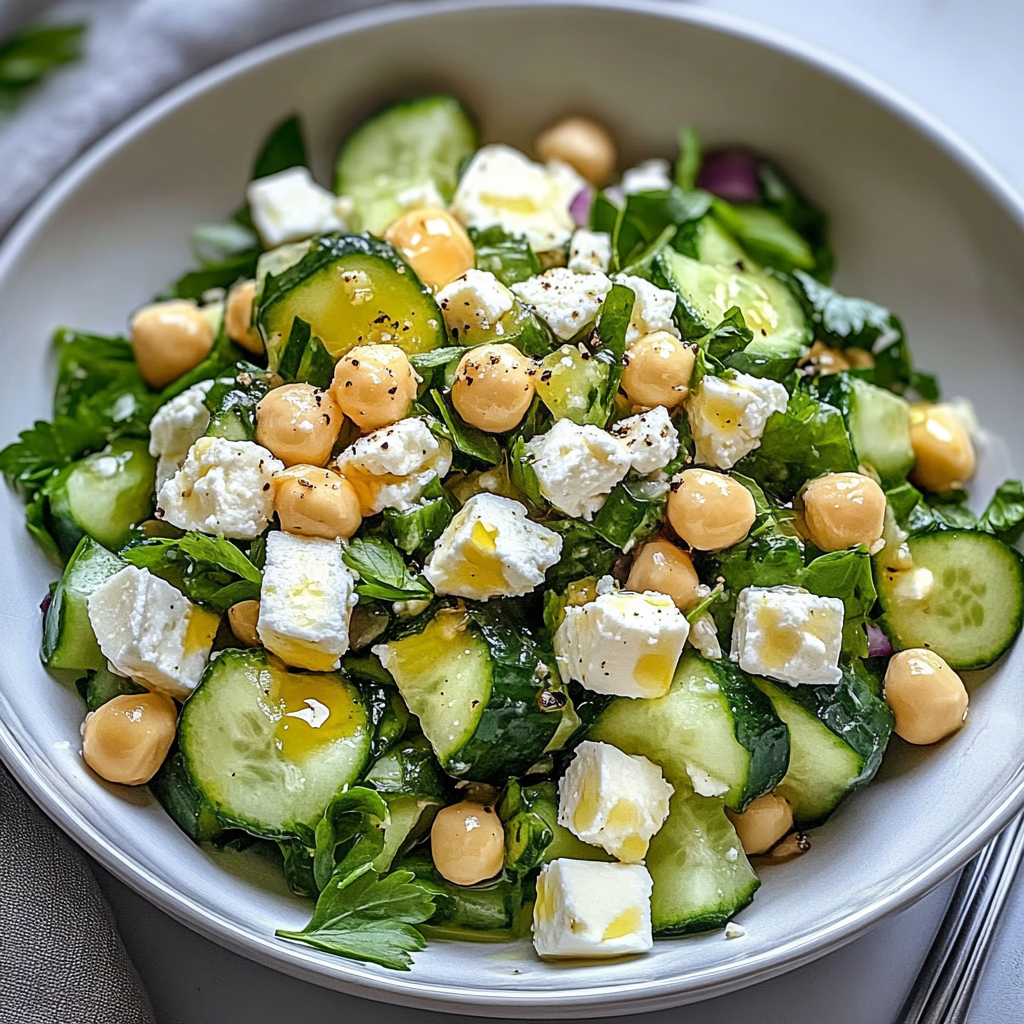 Verführerischer Gurkensalat mit Feta und Kichererbsen